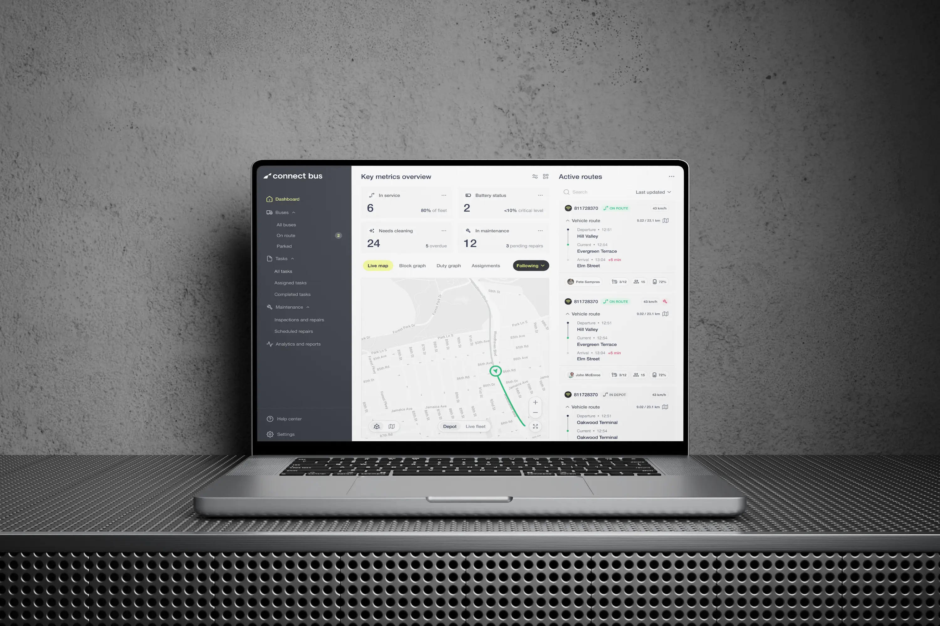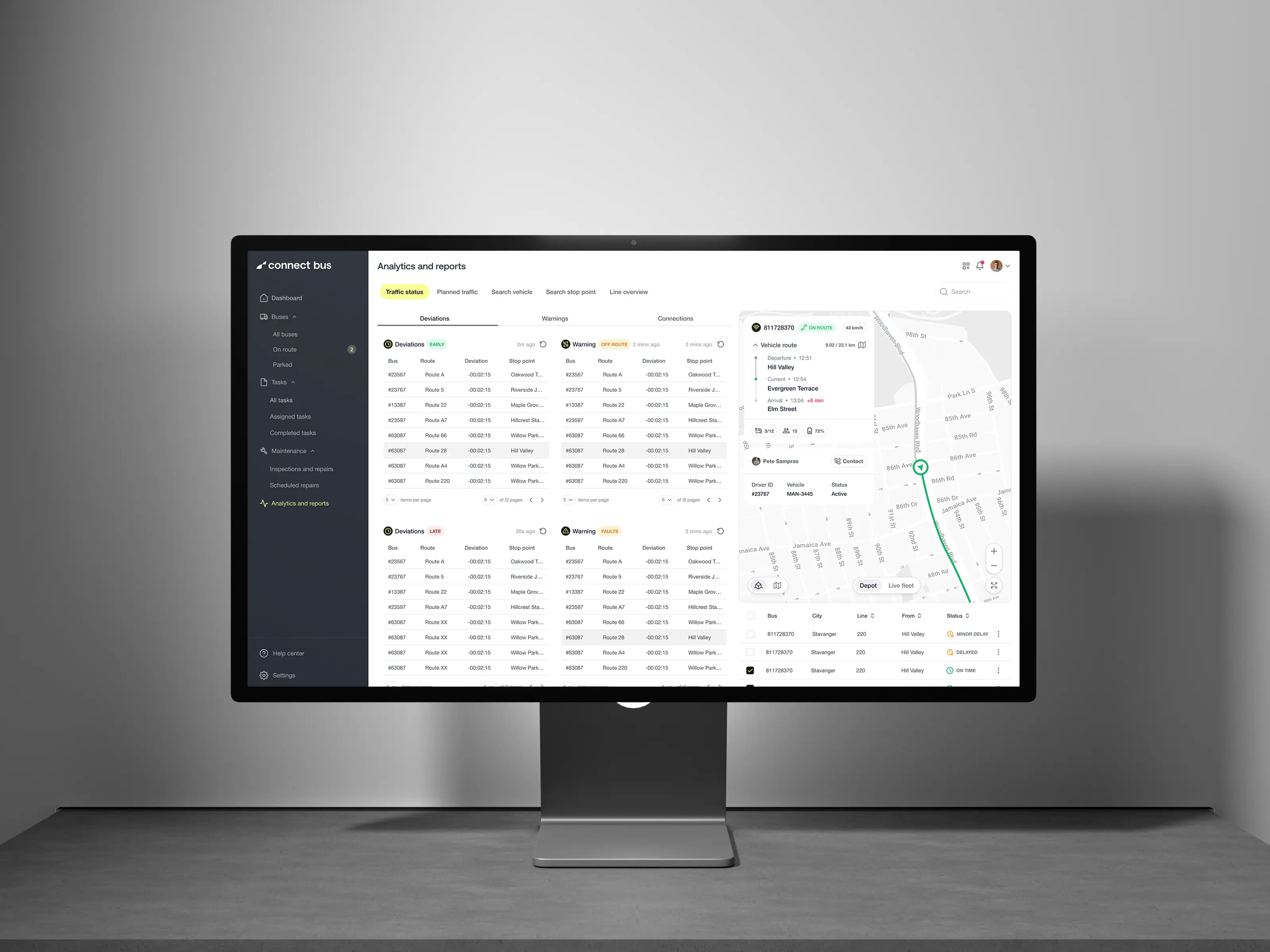 The inefficient paper trail at our client’s main bus depot needed a modern upgrade. The task at hand was to implement a system that utilizes real-time data from the buses to streamline operations, all within the strict guidelines of Kolumbus AS.
